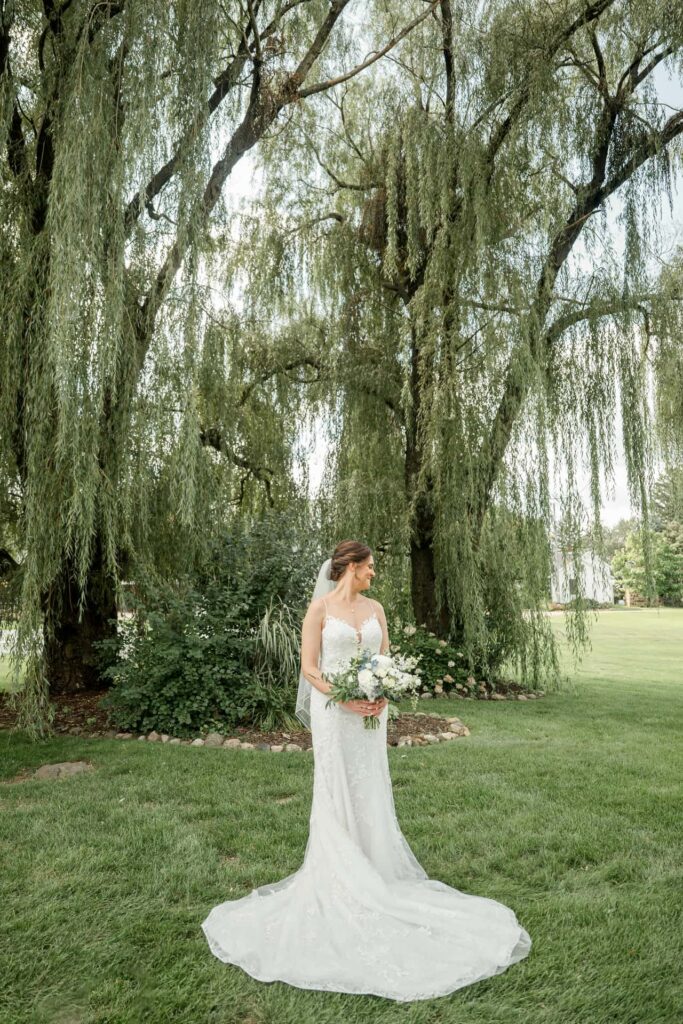 The Harvest Moon Pond in Poynette is a great mix of traditional barn with modern elegance. It has a HUGE outdoor space and patio for entertaining guests, and a gorgeous ceremony space set in front of a gigantic willow tree. You don’t have to leave the property to get a variety of photos…It’s surrounded by quaint gravel trails, wooded areas, a pond and fields. The outside of the venue itself also makes for a pretty backdrop!