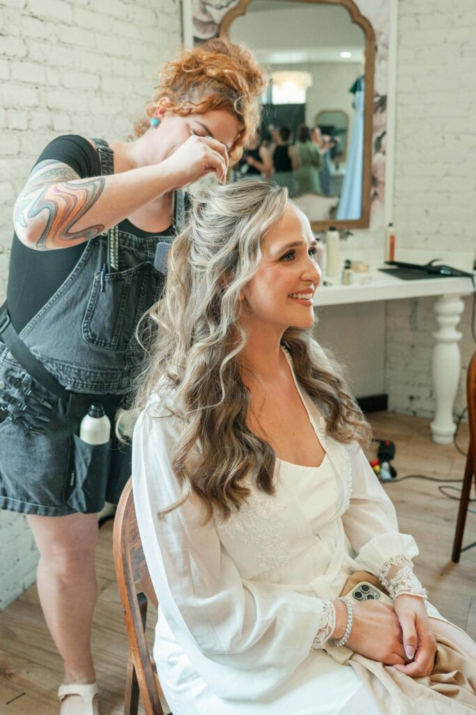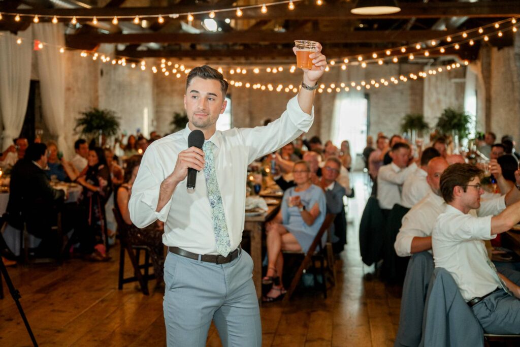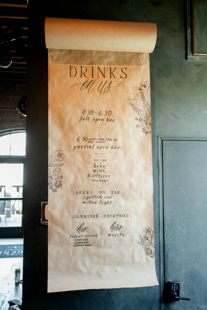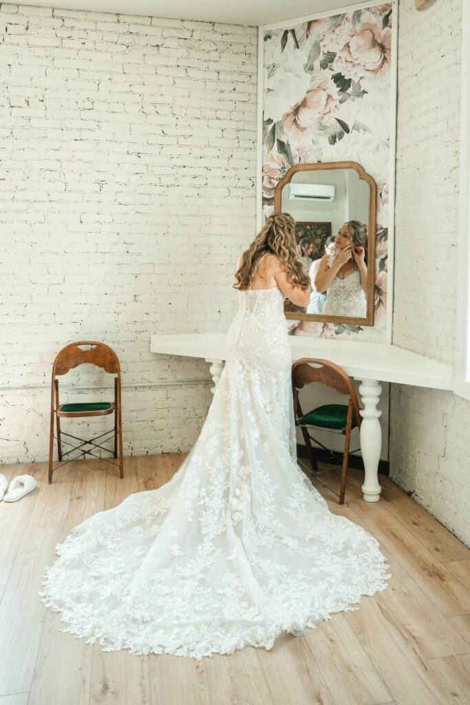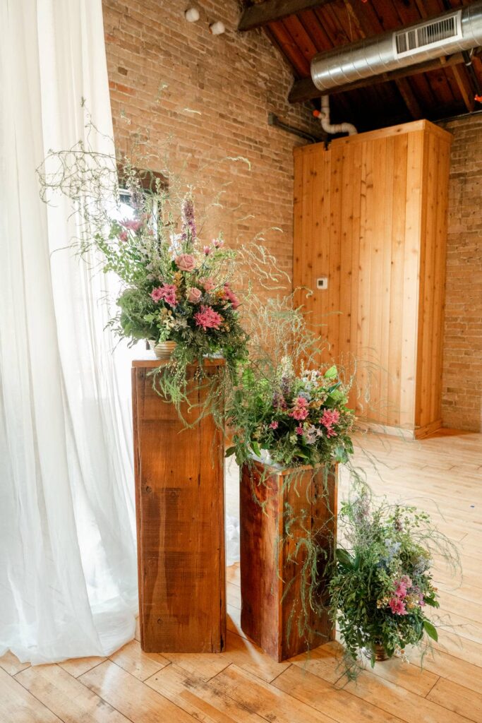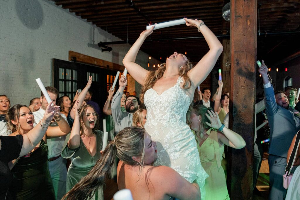 The Tinsmith has a separate ceremony hall, so there’s no reception “flipping” needed. The reception space holds up to 200 people seated, and the solarium is often used for cocktail hour. The venue also has a beautifully decorated bridal suite, so you can get ready right on site.